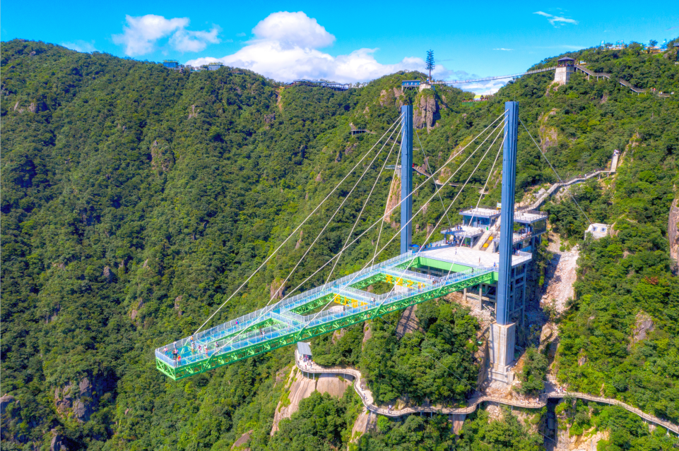 橋身全長82米,全體透明。行走其間如同凌空漫步、踏云破霧,男女老少幾乎人人都可體驗的高空玻璃棧橋。